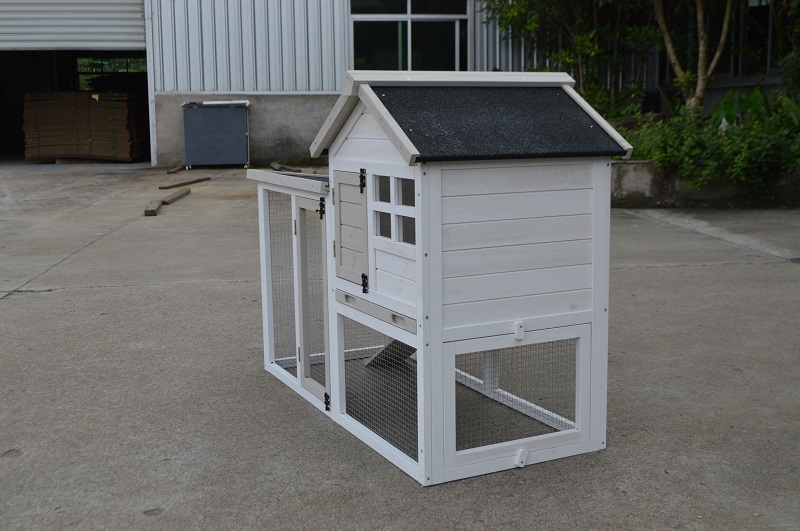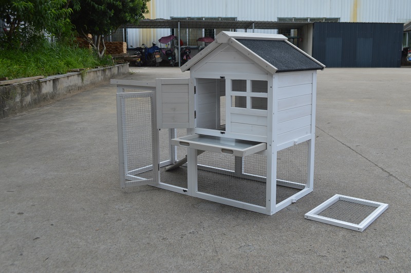 הכלוב בנוי עץ מלא, מטופל וצבוע, עמיד בכל תנאי מזג האוויר. גג "שינגלס" אטום למים ורשתות ברזל מגולוונות 1X1 ס"מ