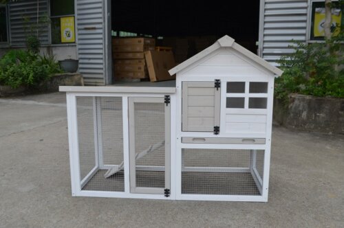 הכלוב בנוי עץ מלא, מטופל וצבוע, עמיד בכל תנאי מזג האוויר. גג "שינגלס" אטום למים ורשתות ברזל מגולוונות 1X1 ס"מ