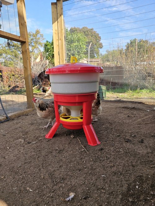 כלי האכלה חסכוני מקצועי לתרנגולות, ברווזים, תרנגולי הודו, טווסים, אווזים ועופות מים מכל הסוגים. כלי ההאכלה החסכוני בנפח 30 ליטר ומכיל כ 25 ק"ג תערובת. הכלי עשוי בסיס פלסטיק איכותי קשיח עם רגליים עבות וחזקות לנשיאת משקל הכלי והתערובת. לכלי ההאכלה המקצועי צלוחית האכלה עמוקה ממנה התרנגולות מלקטות את המזון, התרנגולות לא מצליחות לפזר מחוץ לכלי את התערובת ובכך המגדל חוסך בהוצאות ההאכלה.