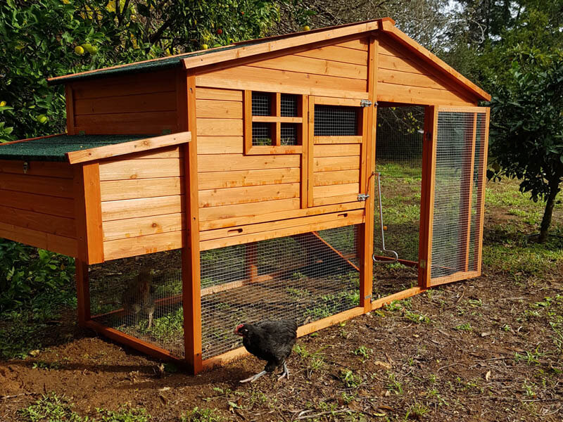 לול בצבע חום – גג בצבע ירוק.