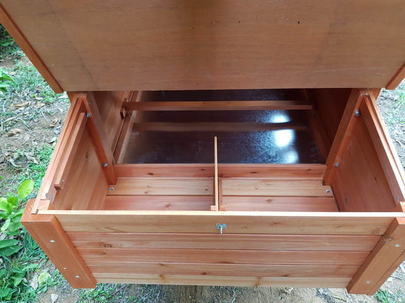 אזור הטלה מחולק לשני תאים בעל גישה חיצונית לאיסוף ביצים מהיר ופשוט.