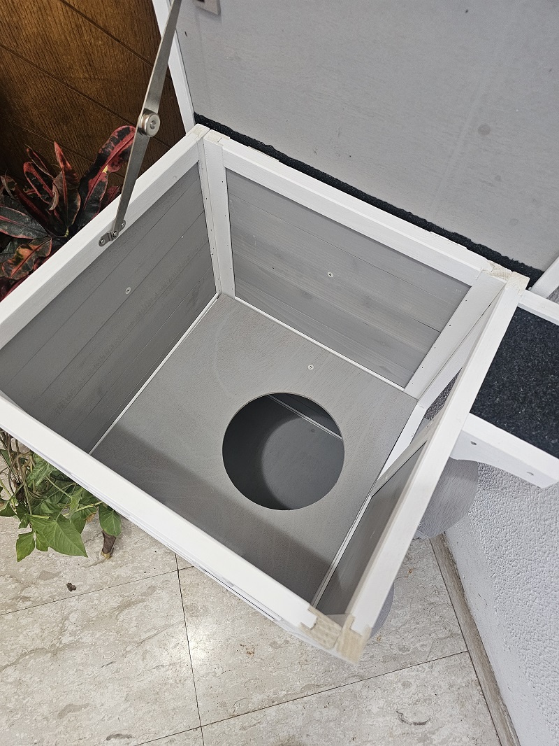 מחסה לחתולים מדגם לונה. דגם איכותי ונוח מתוכנן בשתי קומות עם מעבר פנימי ביניהם ובעל 2 פתחים – חשוב מאוד עבור חתולים שחיים מחוץ לבית. בקומה הראשונה פתח תריס מתנדנד לכניסה ויציאה של החתולים וחלל כירבול נעים עם מעבר עליון ממנו לקומה השניה. בקומה השניה חלון שקוף ופתח יציאה החוצה. גג המחסה נפתח מעלה במידה ורוצים לנקות, לאוורר או לרסס את המחסה נגד פשפשים. הגג מצופה "שינגלס" חומר מוגן מים והמחסה מותאם גם לתנאי חוץ וגם לתוך הבית.