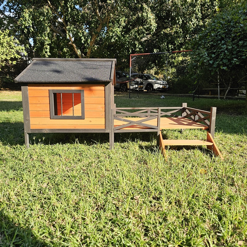 מלונה בסגנון קלאסי עם גג משופע ומרפסת שמש מפנקת. בנויה מעץ אורן מטופל וצבוע, עמיד לרטיבות, מזיקים וריקבון. המלונה מוגבהת מהקרקע למניעת לחות וקרירות שתשפיע על יובש וחמימות השטח הפנימי של המלונה וכמו כן למניעת כניסת מים פנימה במקרים של הצפה באזור בו ממוקמת המלונה. המלונה כוללת חלון עם סורג לאוורור. מתאימה לכלבים קטנים ורגועים במשקל שלא יעלה על 12 ק"ג.