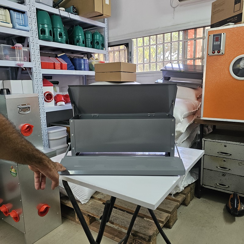מתקן אוכל אוטומטי לתרנגולות וברווזים, בעל מנגנון דריכה – בזמן שבעל החיים עומד על המתקן הוא נפתח ומאפשר האכלה ובכך מונע מציפורים ועכברים ואכול את התערובת של התרנגולות והברווזים. המתקן מונע בזבוז מזון באופן מוחלט. מתקן המזון מכיל כמות של כ 6 ק"ג תערובת.